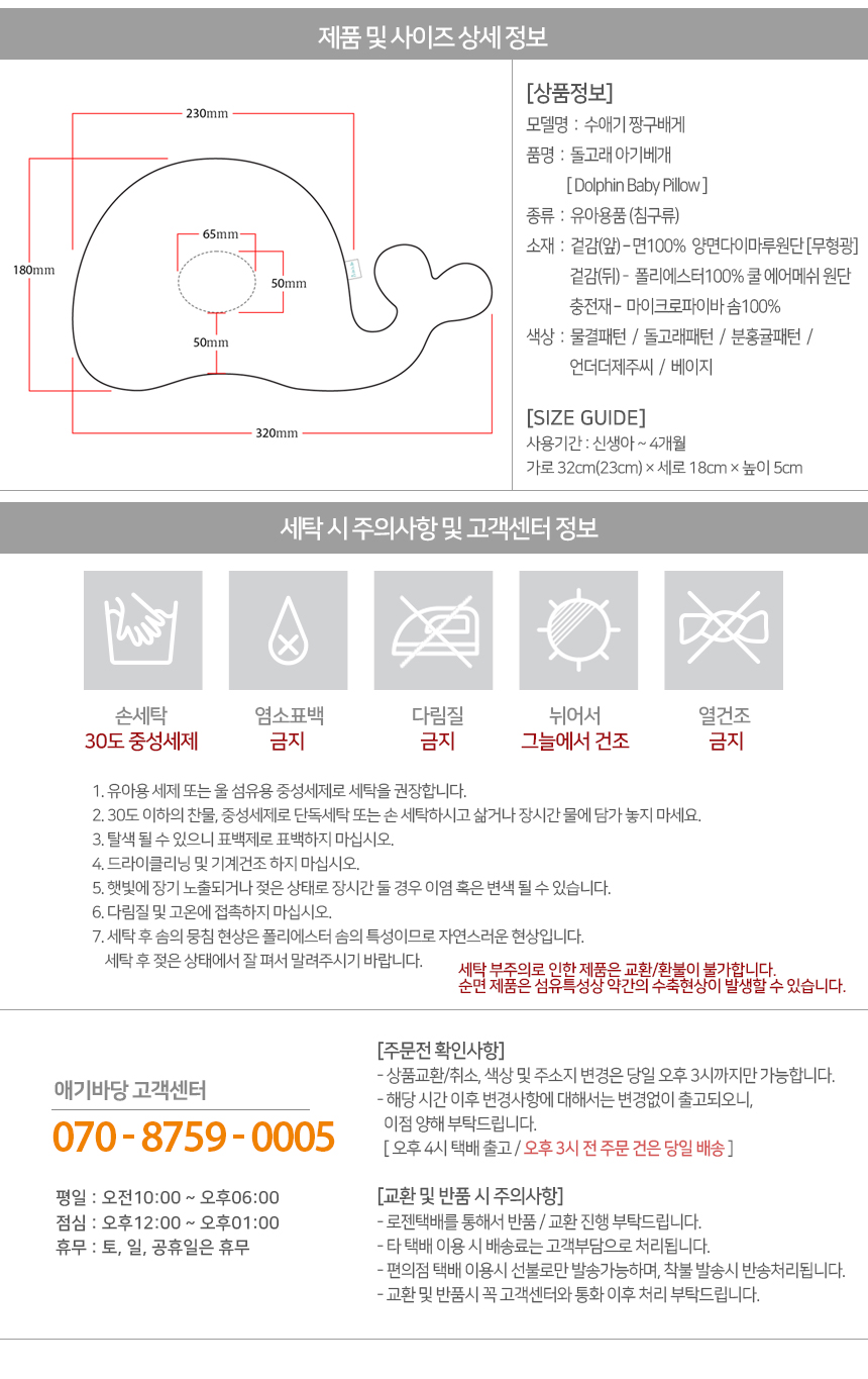품명 돌고래 아기베개 [ Dolphin Baby Pillow ]